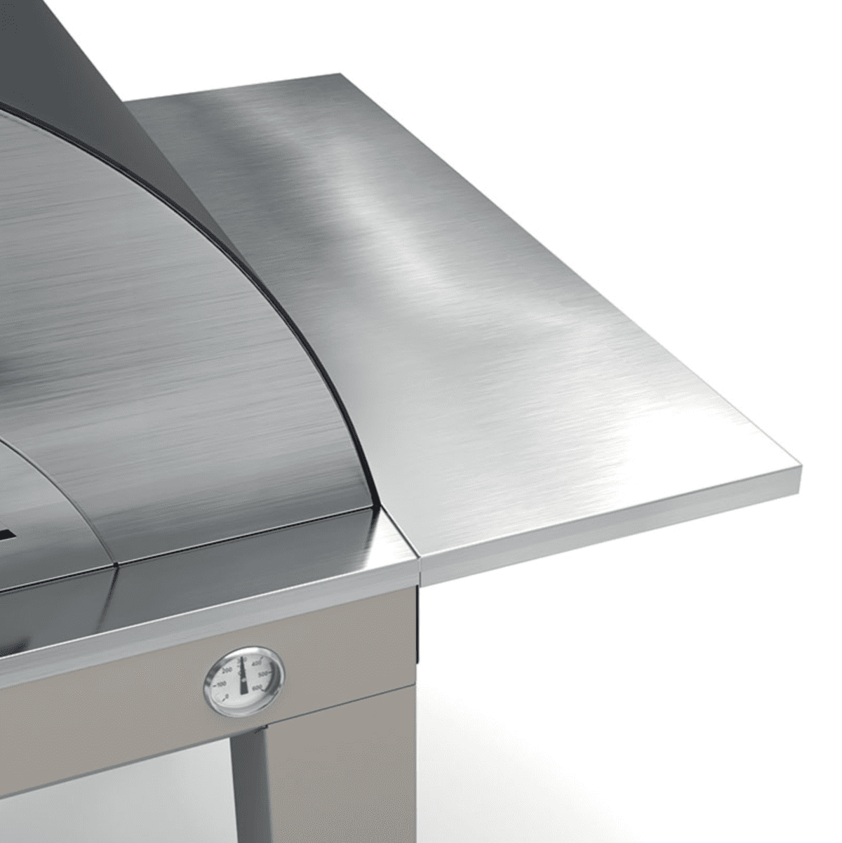 Bellagio è il forno dalle generose dimensioni, quasi professionali, dedicato agli appassionati del cucinare italiano in famiglia e con gli amici. Il piano di cottura da 80×80 cm, consente la cottura fino a 5 pizze disposte comodamente e oltre 5 kg di pane.Disponibile nella versione con carrello e anche in quella da “libero posizionamento” per terrazze, balconi o incasso nelle cucine da esterno. La volta realizzata in acciaio inox di elevato spessore consente di raggiungere le temperature elevate necessarie alla cottura della vera pizza, in brevissimo tempo e con pochissima legna. Il piano di cottura è realizzato in materiale refrattario da 3 cm di spessore per il rilascio lento e delicato del calore come da tradizione. Il mantenimento della temperatura per lungo tempo e la riduzione dei consumi di legna sono garantiti dal massiccio isolamento in fibra ceramica e lana di roccia naturale, in special modo la coibentazione alla base del forno consente il suo posizionamento anche su piani in legno o altri delicati materiali senza nessun rischio. Nella versione con carrello, Bellagio offre un comodo vano chiuso per il contenimento della legna.Completano la dotazione il coperchio, con ampio vetro di visione del forno per la più confortevole cottura di tutte le pietanze come arrosti, pane, dolci; le maniglie in materiale anti-scottatura, e il termometro per il più preciso controllo della temperatura di cottura.