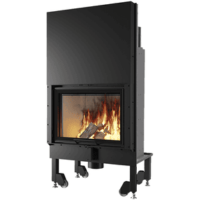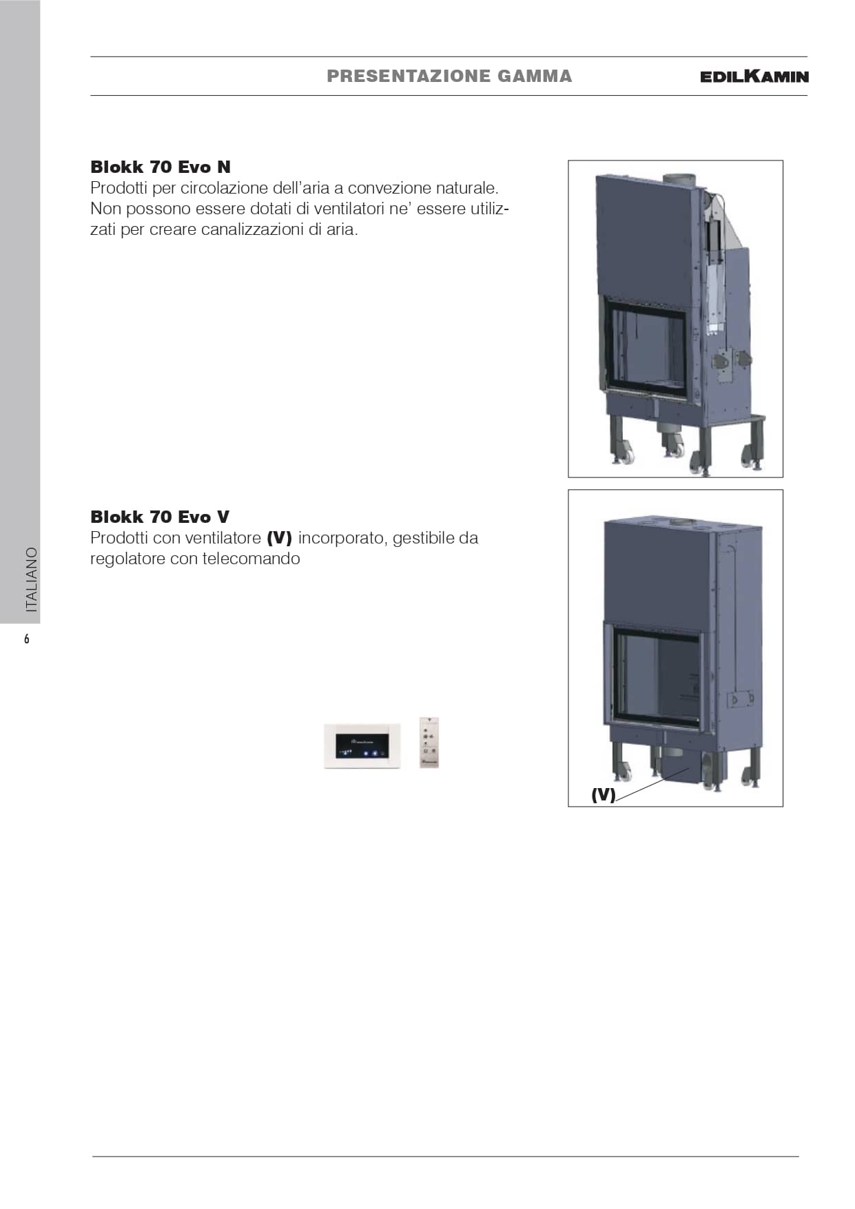 • versione V (ventilazione forzata) completo di: mantello convettivo per canalizzazione aria calda, kit di ventilazione integrato completo di regolatore elettronico e telecomando