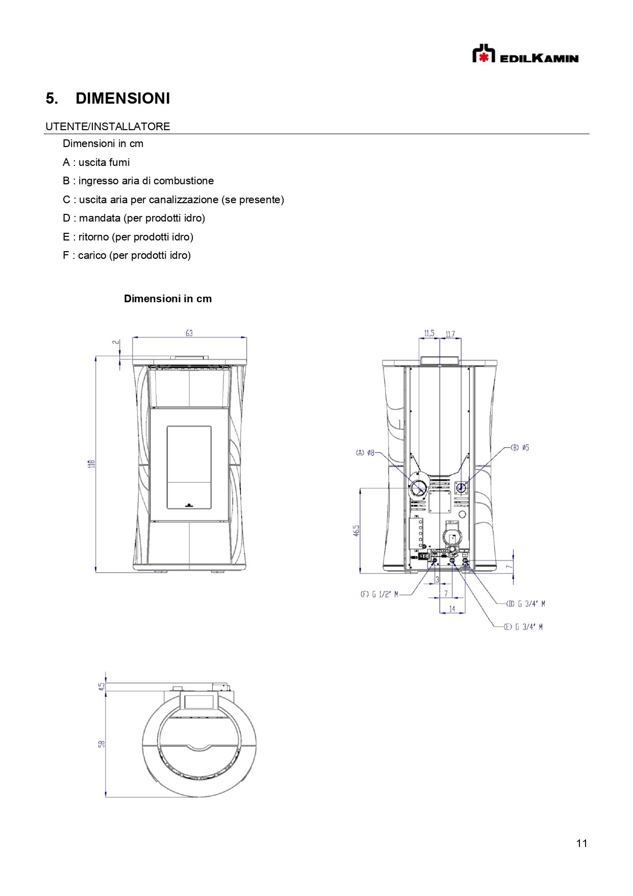 • Focolare in acciaio• Candeletta ceramica• Display sul top• Kit idraulico incorporato con vaso espansione chiuso, circolatore e valvola di sovrapressione• Programmazione giornaliera/settimanale• Ventilazione aria calda frontale (modulabile e disattivabile)• Spia riserva pellet• Uscita fumi posteriore• Impianti configurabili da display