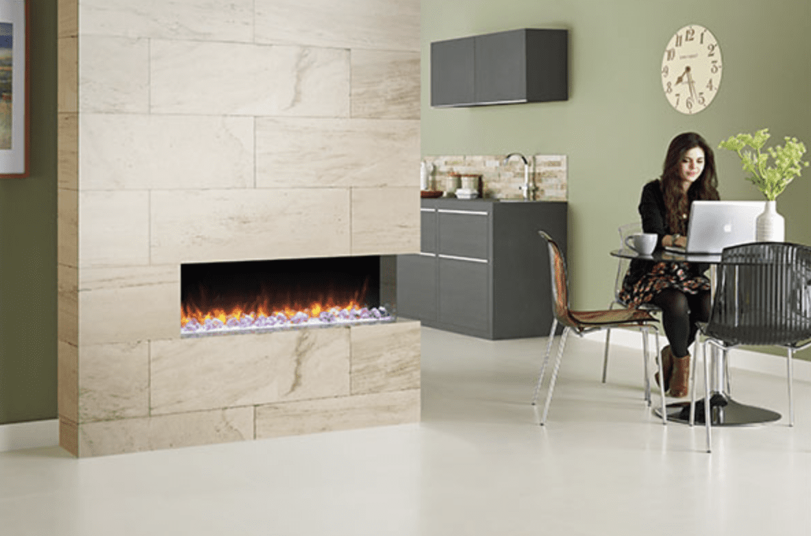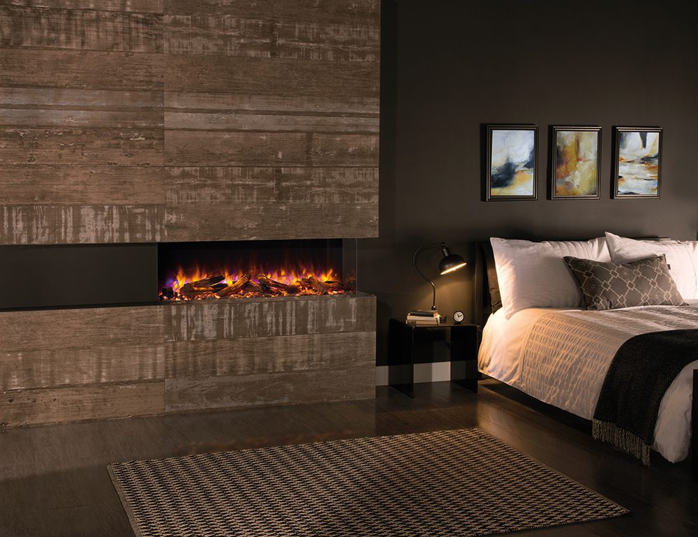 Caminetti elettrici installabili come camini trifacciali o come come camini ad angolo con vetro a sx o dx;