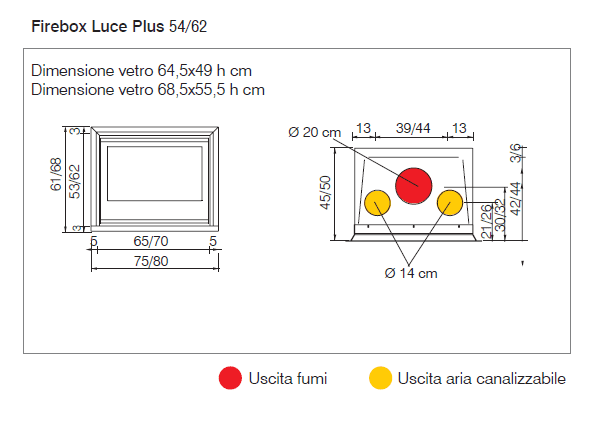 Firebox Luce Plus in versione 62 presenta dimensioni e potenza resa maggiori del modello base. Il suo impiego è pertanto ideale nel caso in cui si desideri avere un caminetto dalle prestazioni termiche superiori nonché una maggiore presenza nel locale dove verrà installato.