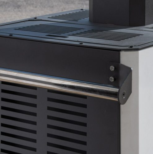 Stufa a pellet da esterno a tiraggio naturale. Senza elettricità. Solo per utilizzo all’aria aperta.