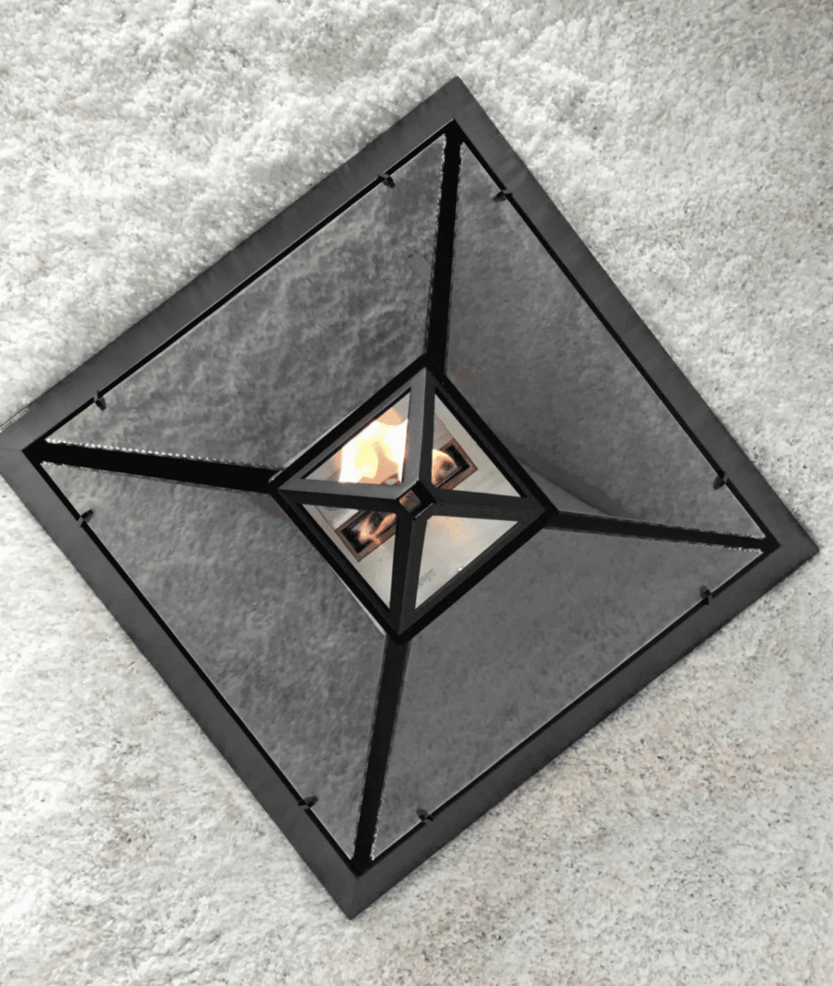 Louvre aperto su quattro lati, per una visibilità della fiamma a 360 gradi, perfetto per un angolo di relax con un buon libro o per riunire gli amici attorno al fuoco a raccontare le vacanze passate o programmare le future.