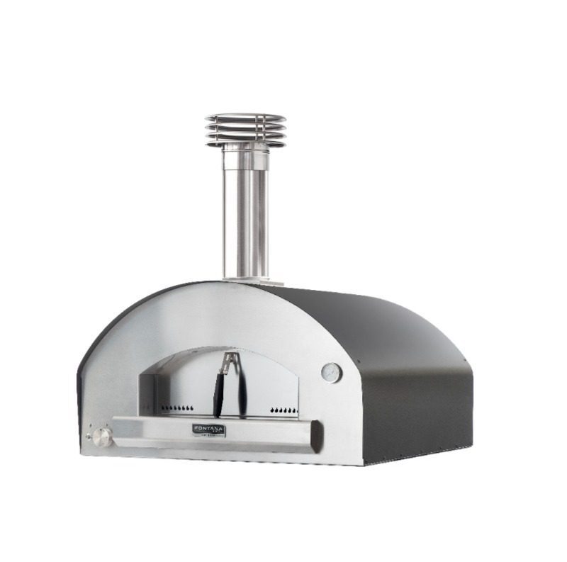 Forno con camera di cottura da 80×80 cm. Dotato di pratico carrello in acciaio inox con piano d’appoggio, ruote e gancio porta utensili è fornito di canna fumaria dotata di valvola di regolazione dei fumi e cappello, porta di chisura della bocca fuoco. Il piano fuoco è realizzato in chamotte refrattaria di alta qualità e certificata per usi alimentari. La struttura interna è in acciaio inox mentre l’esterna è in acciaio elettrozincato trattato con vernici ad alta temperatura per la massima resistenza al calore, alle intemperie e alla ruggine. La coibentazione del forno è realizzata in lana di roccia naturale e permette di contenere la temperatura più efficacemente e di evitare che la struttura esterna si scaldi troppo.