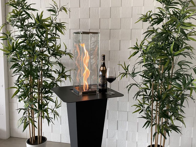 La riscoperta di dehors, terrazzi, pergole e spazi all’aria aperta ha ispirato la progettazione di questo affascinante camino a bioetanolo: la presenza di un tavolino opzionale gli conferisce una duplice funzione, quella di creare ambiente e calore oltre a offrire un piano di appoggio.