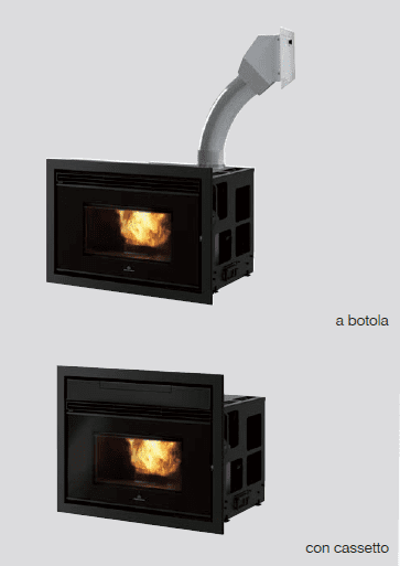 • Kit di caricamento pellet a botola con scivolo oppure con cassetto frontale