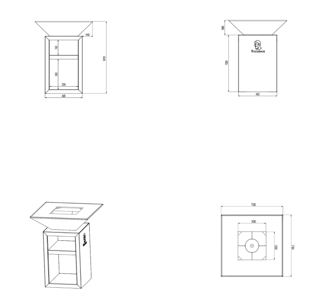 Superficie piastra: cm 73 x 73