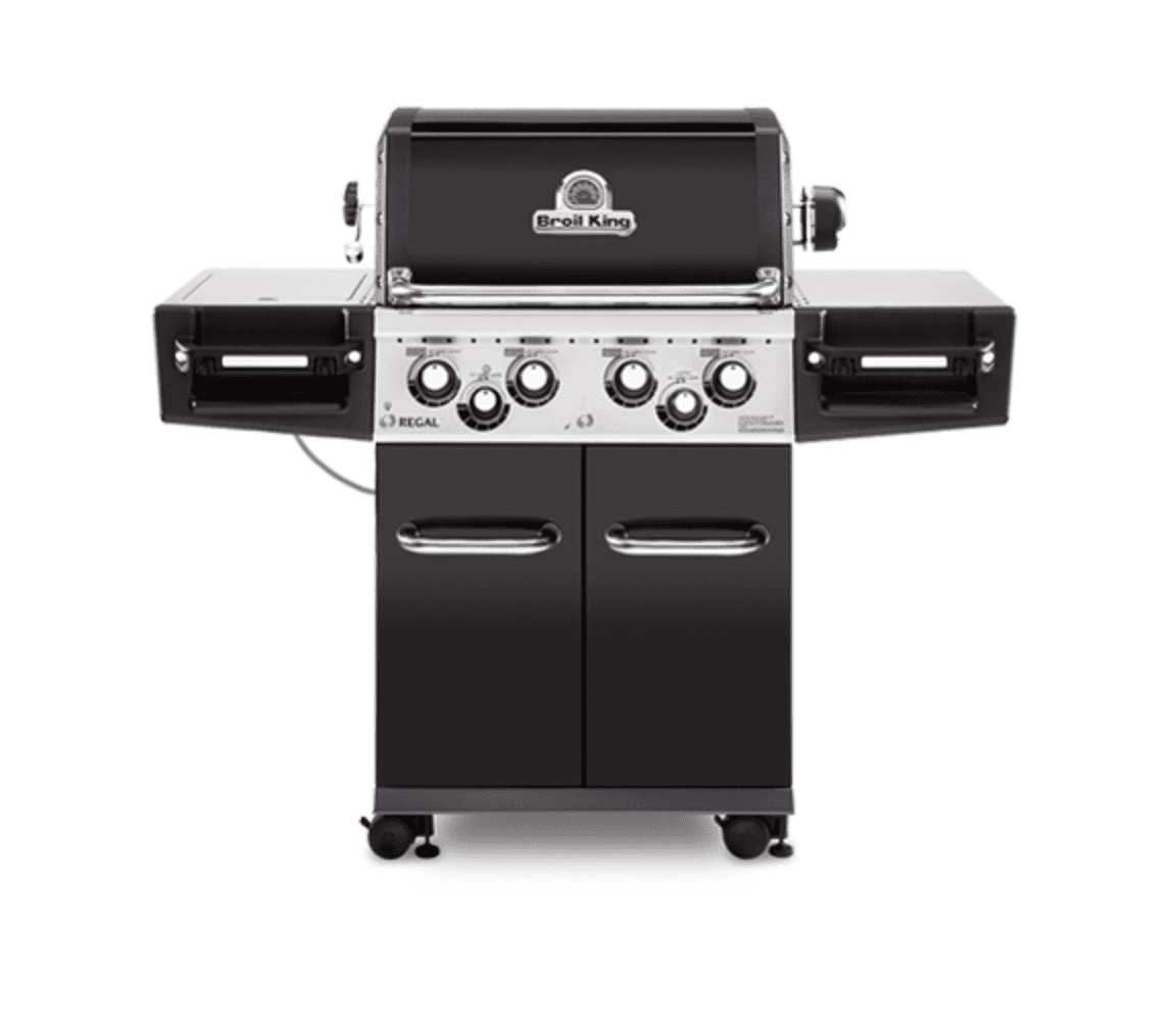 Barbecue a gas con girarrosto, bruciatore posteriore, fornello laterale e manopole illuminate a LED