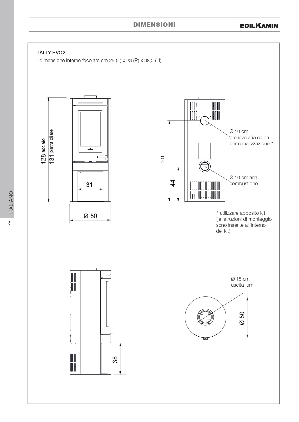 • Ciocchi di legna fino a 33 cm verticali e 25 cm orizzontali