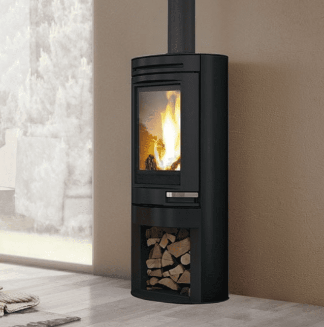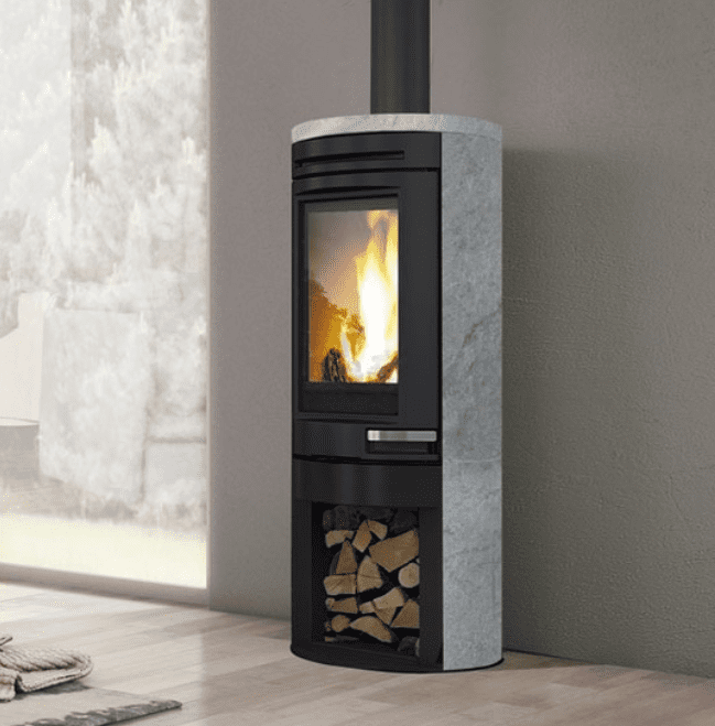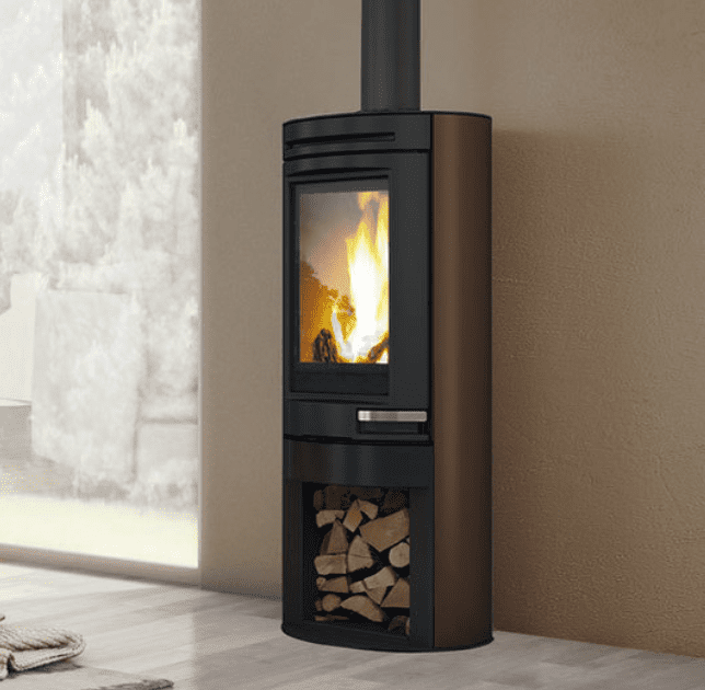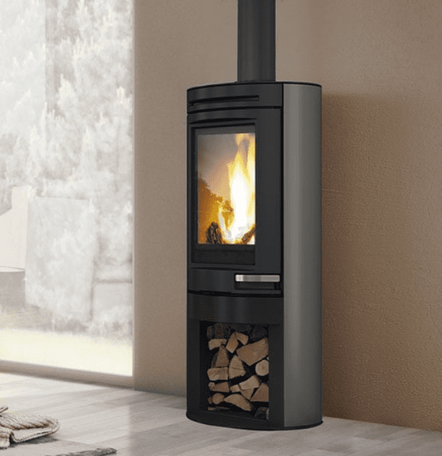 Stufa a legna Tally Evo2, con ampio vetro piano verticale che esalta il naturale andamento della fiamma. Tally Evo2 è predisposta per accumulo con kit optional: il top con anelli refrattari consente di accumulare calore e rilasciarlo in maniera prolungata anche nelle ore successive all’ultima carica di legna.