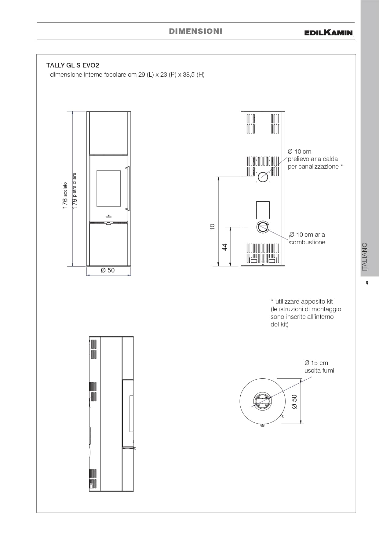 • Uscita fumi superiore o posteriore Ø 15 cm