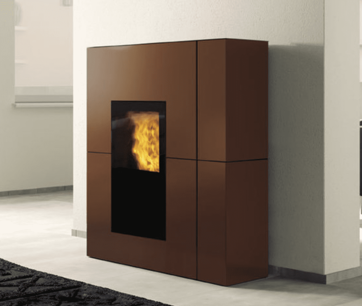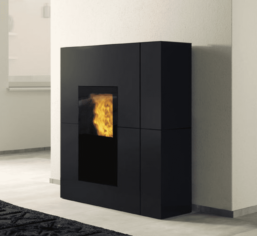 Stufa a pellet canalizzabile con profondità ridotta (cm 34,5).