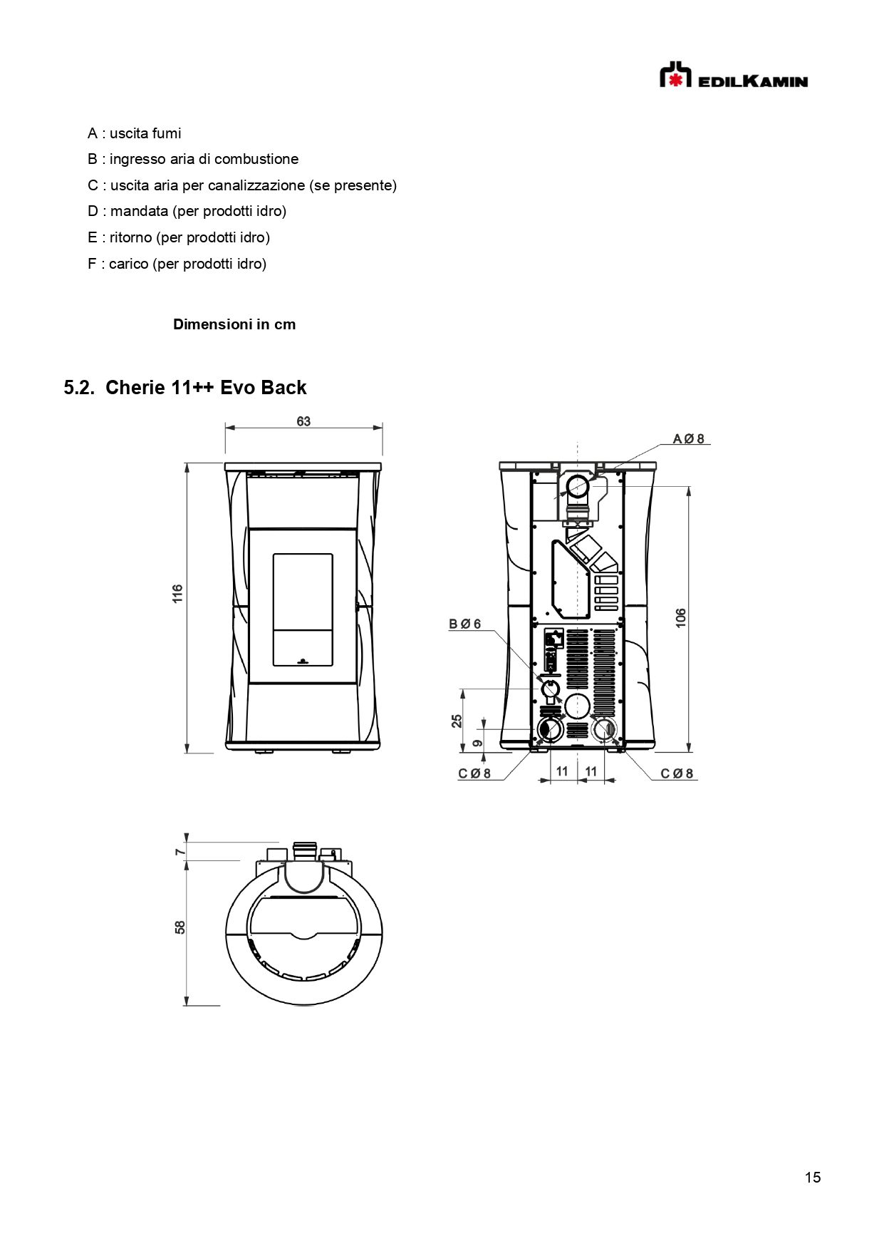 – uscita fumi posteriore Ø 8 cm, femmina (CHERIE 11++ EVO BACK) SCHEDA TECNICA