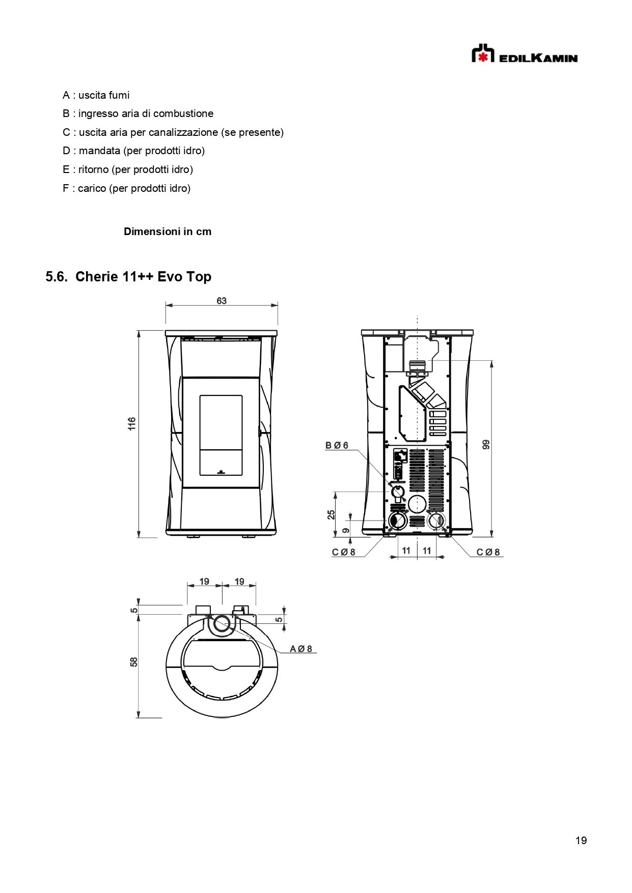 – uscita fumi superiore Ø 8 cm, femmina (CHERIE 11++ EVO TOP) SCHEDA TECNICA