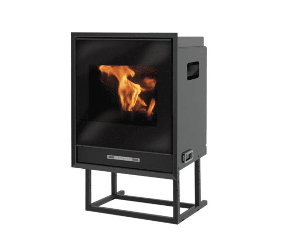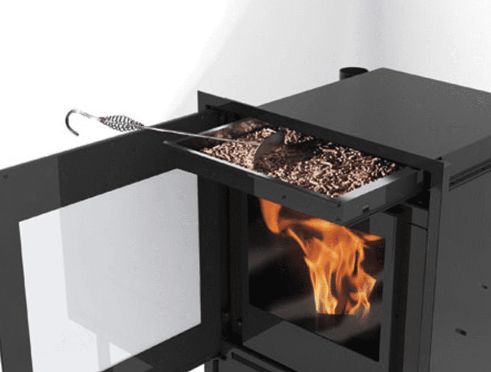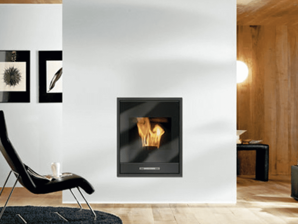 Caminetto a pellet di dimensioni contenute, in grado di riscaldare l’acqua per alimentare l’impianto di riscaldamento (termosifoni, scalda salviette, pannelli radianti a pavimento..).